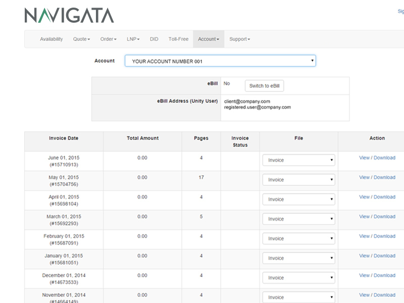 Track and manage your entire service and order history. Follow your trouble tickets. Access all historical invoices and CDRs 24/7.